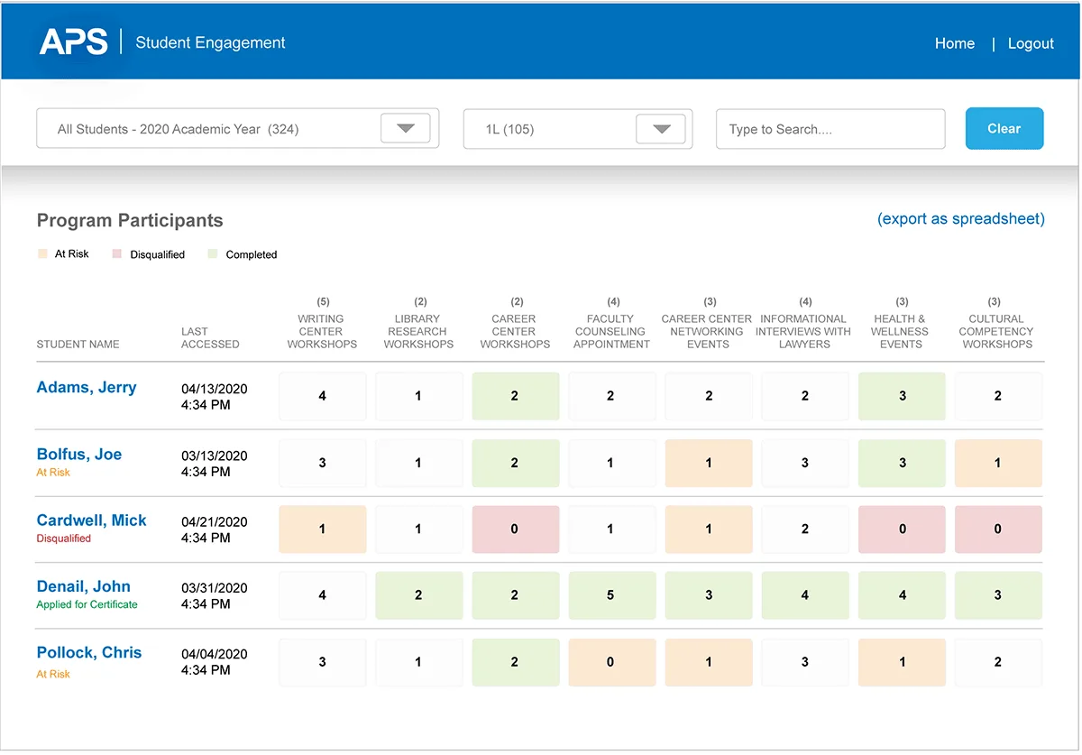 Designed to allow for student self-seating and participation tracking, this application can act as an early intervention indicator for academic success.